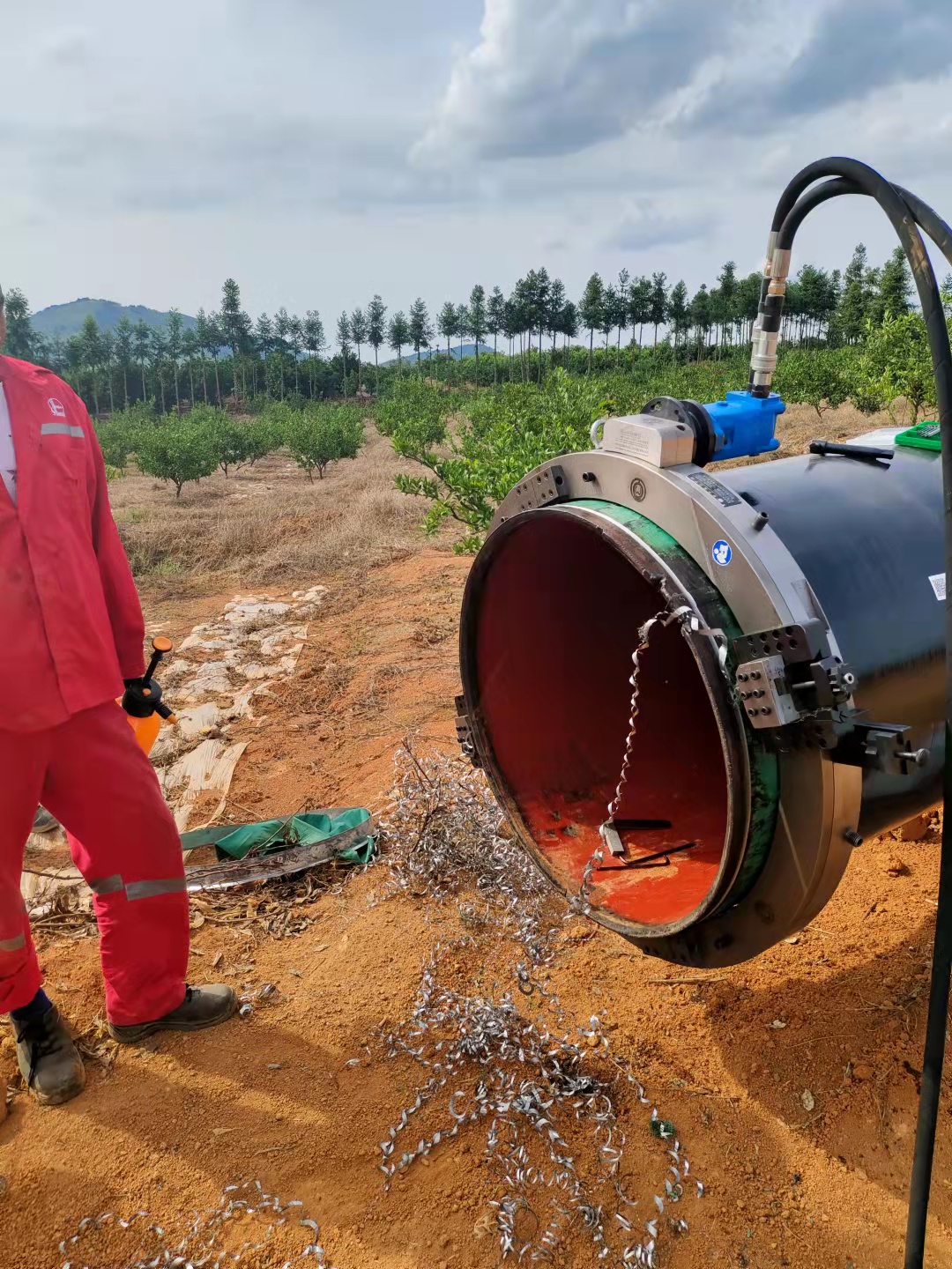 The hydraulic pipe cutting